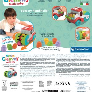 Clementoni Sensory Steamroller Brick Eater Roller with 6 Clemmy Blocks, for Toddlers 6-36 Months, 17495